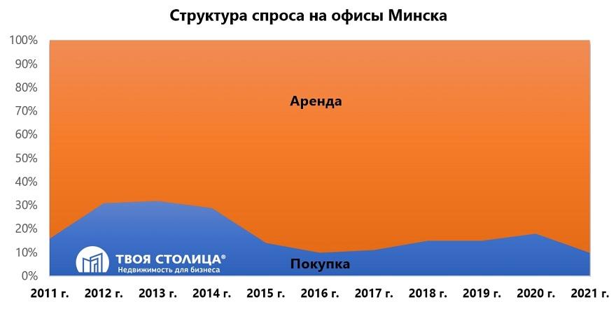 Купля-продажа коммерческой недвижимости начала сдавать свои позиции в 2015-2016 годах, и полностью аренда захватила свою позицию с 2017 года. По спросовым заявкам на аренду приходится порядка 85-90%. Остальные 10-15% покупаются не компаниями, а физлицами для последующей сдачи в аренду.