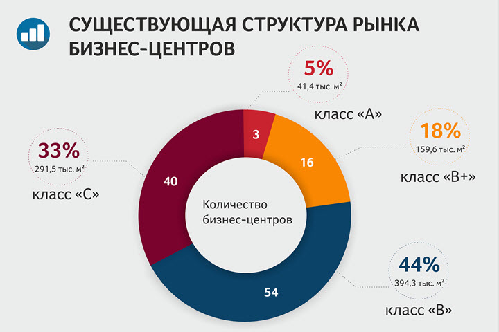 Совокупная офисная площадь вышедших на рынок бизнес-центров составила порядка 70 тыс. м2. В 2017 году ожидается ввод еще 40 тыс. м2. офисных площадей, в том числе бизнес-центры Fortune и третий блок Riviera Plaza.