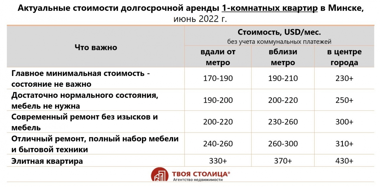 — На первом месте это «Маяк Минска». В основном, это квартиры комфорт-класса, стоимость аренды которых начинается от $ 300. На втором месте — Новая Боровая. Здесь можно найти квартиры немного дешевле из-за того, что юридически это не Минск, и местонахождение за кольцевой. Там — от 280 долларов. На третьем месте микрорайон Лебяжий — снять квартиру здесь можно от 350 долларов. Но речь идет о больших площадях, маленьких квартир там нет. На четвертом месте — Минск Мир, где можно найти малогабаритные квартиры, которые востребованы молодыми арендаторами. И пятое место — это свежие дома в районе метро «Петровщина».