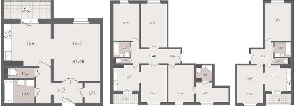 - 1-комнатные (41,46 кв. м): цена квадратного метра – 3 090,95 бел. руб.* (1,430$);