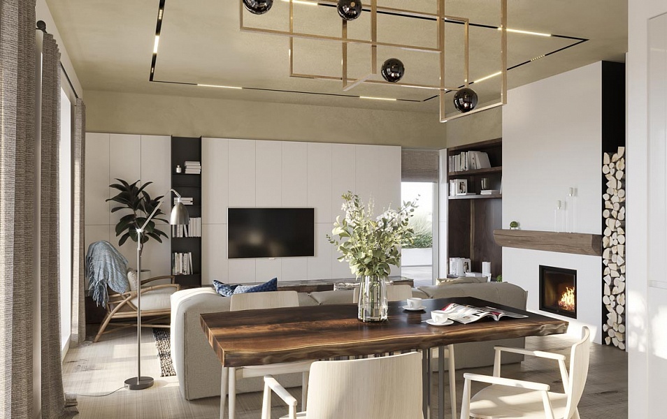 - мансардные квартиры с каминами с высотой потолка 4.4 м.