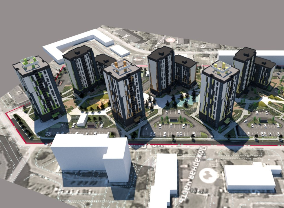 - Особенностью проекта является зеленый бульвар, который соединяет все дома жилого комплекса, который разделен на три части: пространство с детской площадкой, пространство со спортивной площадкой и зона для тихого отдыха.