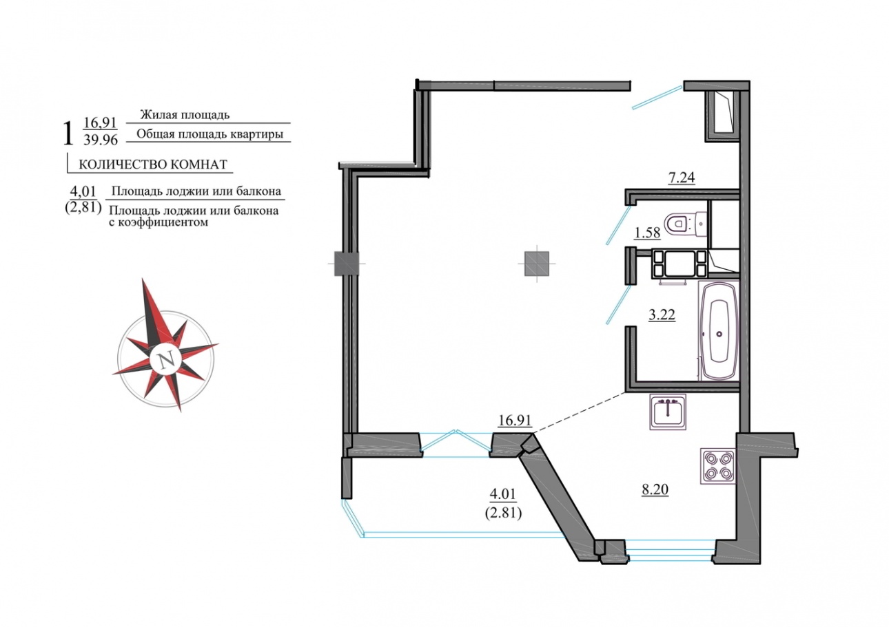 - 1-комнатные квартиры общей площадью 37-39 квадратных метров,