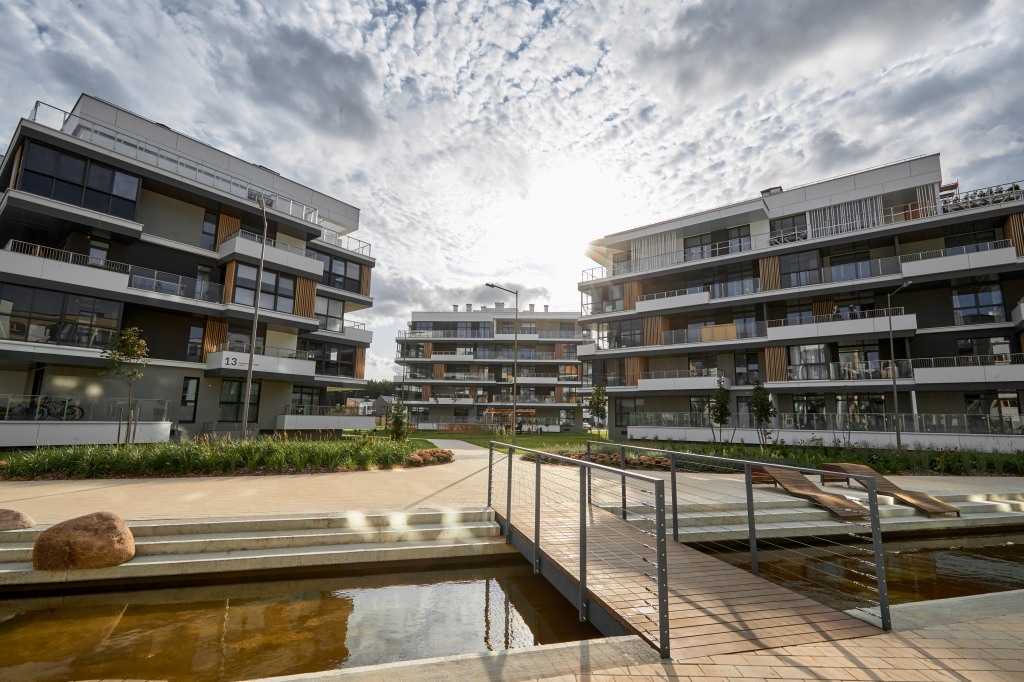 В квартале предусмотрены водный канал с просторной набережной и настоящим водопадом, игровые площадки, зоны для пикников, собственные магазины и даже кафе с кинотеатром.
