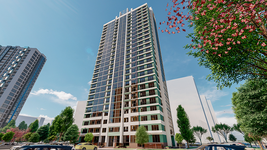 Возвышаясь на 25 этажей, новостройка будет сверкать в лучах солнца благодаря панорамному остеклению с красивой бронзовой тонировкой, создавая праздничное настроение своим жителям. Кстати, сдать в эксплуатацию дом планируется уже в 3-м квартале 2021 года – ждать новоселья совсем недолго!