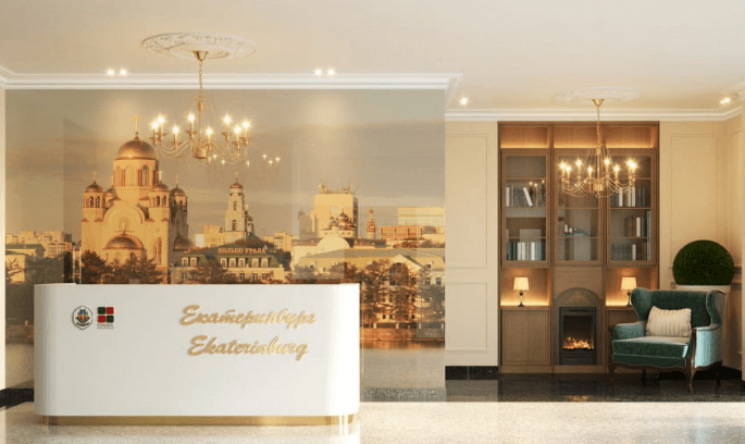 Лобби дома с эксклюзивным дизайном, гранитными полами и порталами лифтов, оформлено в стиле Екатеринбурга и украшено видами этого великолепного города. В вестибюле расположится стойка рецепции для консьержа, а также туалетная комната с пеленальным столиком.