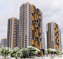 Это невероятно стильные 25-этажные здания с практически сплошным стеклянным фасадом. Площадь квартир — от 27 до 74 кв. метров. В каждом доме предусмотрено три лифта OTIS, один из которых — панорамный!