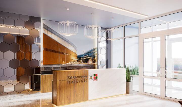 - Просторное и светлое дизайнерское лобби с местом для консьержа;