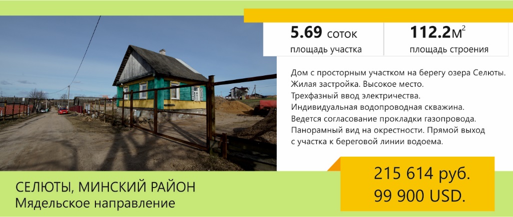 Район новой коттеджной застройки, который примыкает к деревне Селюты расположен на высоком берегу водоема с одноименным названием. Это достаточное перспективное место, которое ждет бурное развитие. Уже создано товарищество застройщиков. Все инженерные сети прокладываются централизованно. Возможность подключения к магистралям появятся и у жителей старой застройки. Покупатель получит хороший дом с просторным участком в 25 соток и с выходом к воде.