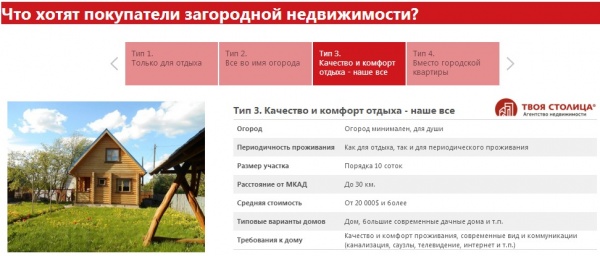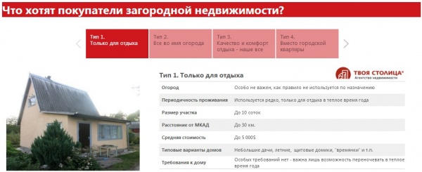 Структура предлагаемых год от года на продажу дач и домов крайне неоднородна. Именно год от года, а не месяц от месяца, потому как загородные дома не имеют такой ликвидности, как, скажем, квартиры в городе. И поэтому срок их самостоятельной продажи может исчисляться годами.