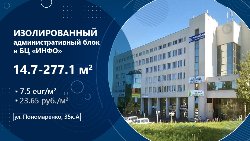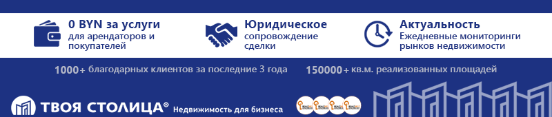 В нашей базе около 200 предложений офисов в аренду в Минске и пригороде. Можно выбрать помещение под свои требования – площади от 15 кв.м., по стоимости от 5 eur/кв.м./месяц, в бизнес-центрах, встроенные в здания и другие. Вы можете обратиться за помощью к нашим специалистам: сопровождение арендаторов с момента консультации до этапа согласования сделки и заключения договора – бесплатно.