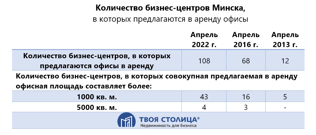 В результате, летом 2016 года был зафиксирован минимальный уровень ставок предложения аренды на офисы Минска. При этом падение цен продажи продолжалось еще год после окончания снижения ставок — до середины 2017 года. Именно после этого периода ценового спада, аренда офисов стала доминировать на рынке — значительно потеснив куплю-продажу, и практически полностью вытеснив с рынка долевое строительство.