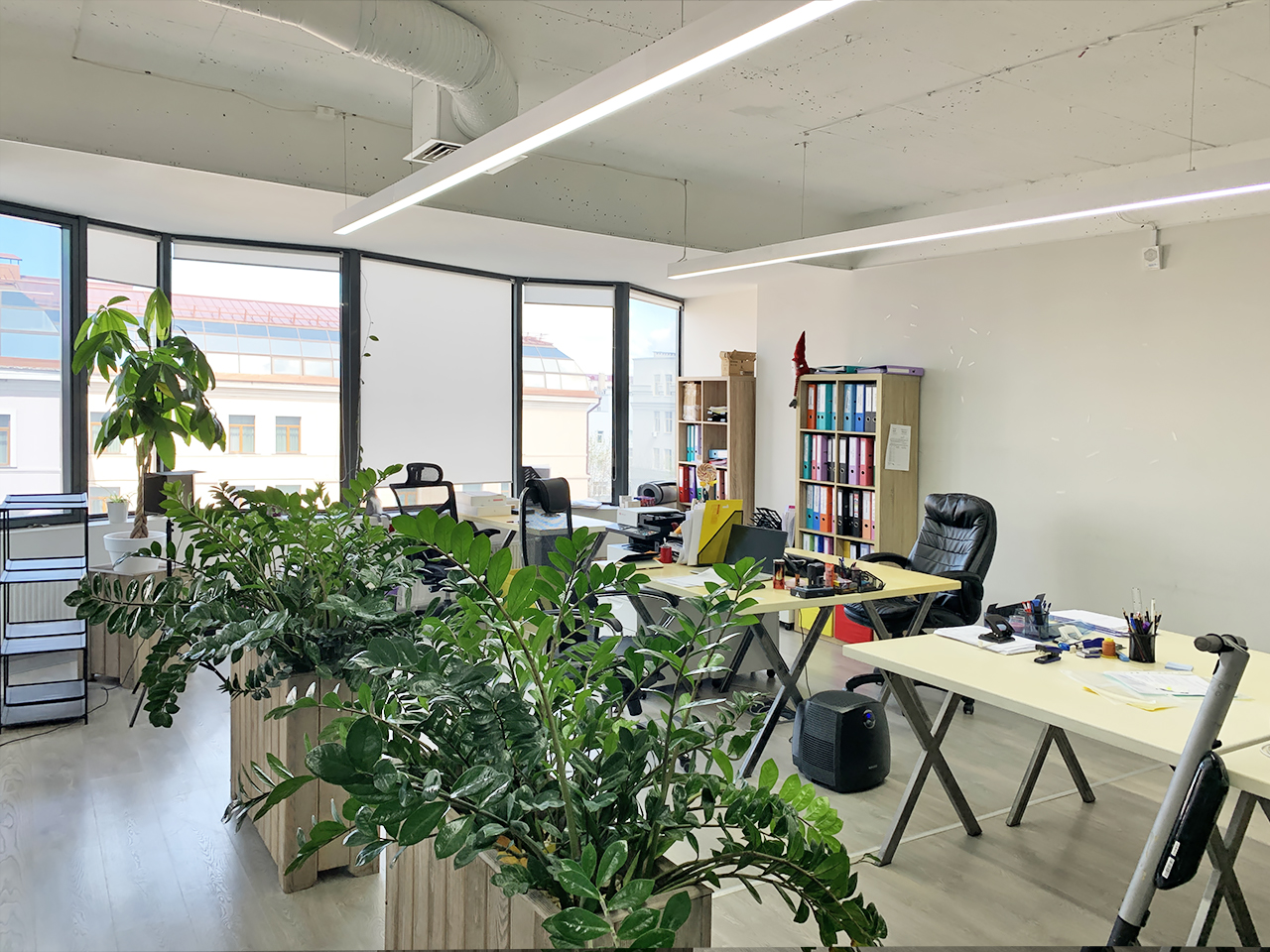 - Офис формата openspace, выделены комнаты для переговоров, для организации кухни, имеется собственный сан. узел