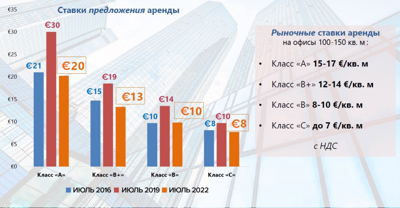 — Этому способствуют как демократичные ставки аренды, так и другие факторы. Например, в свое время большинство из них строились по схеме долевого строительства по бюджетным ценам. Во многих случаях эти вложения уже окупились — и сегодня собственники таких офисов могут себе позволить определенный демпинг по цене. К тому же основная доля спроса приходится на площади с арендными ставками до 10–15 евро за квадратный метр — и эти офисы попадают в данный сегмент.