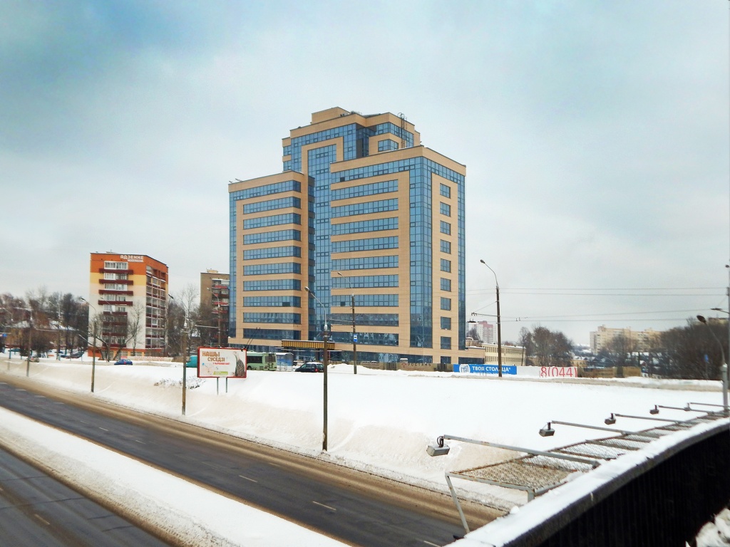 Вид на бизнес-центр «Красавik» с моста трехуровневой развязки