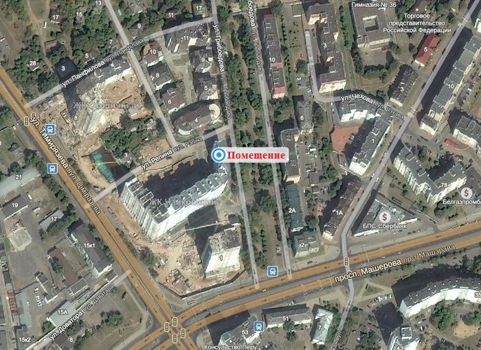 - размещение объекта вдали от сформированных пешеходных и автомобильных потоков, во второй линии застройки от проспекта Машерова;