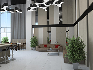 Офисная новостройка открывает городу новый класс объектов, лейтмотивом которых выступает забота о здоровье людей. На большинстве этажей архитекторы продумали зеленые холлы. По задумке создателей много света и вид на растущую зелень должны мотивировать персонал на работу.