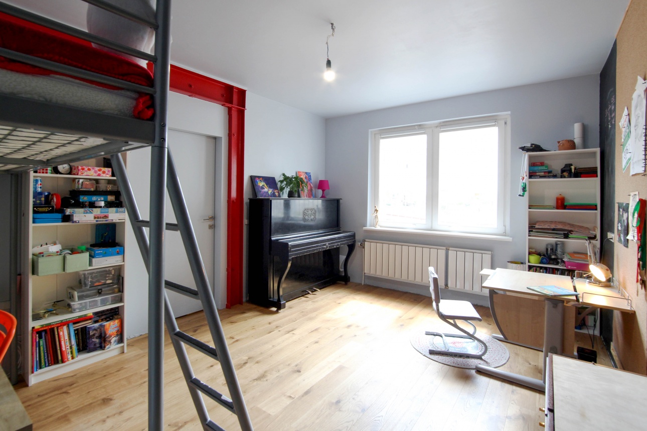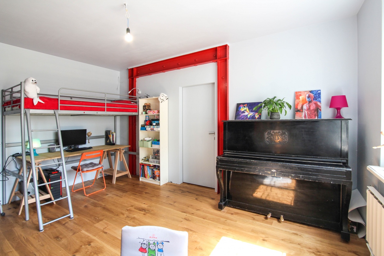 Оформлением пространства для семьи с ребенком занимался профессиональный дизайнер. Здесь нет ничего лишнего, все продумано и эргономично. Интересная деталь: детская комната и спальня находятся в разных дальних углах квартиры. Из спальни, как и из гостиной, есть выход в ванную комнату. Это необычное решение для городской квартиры. Есть гардеробная (мечта любой женщины!) и, что еще более удивительно, - небольшая домашняя прачечная. Она стала частью кухонного пространства.