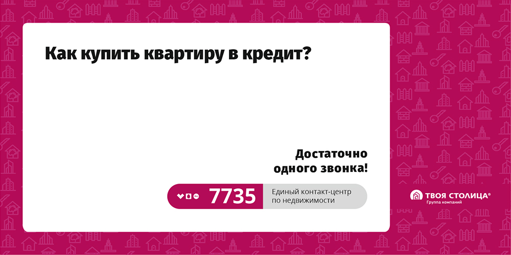 Несмотря на то, что покупателей жилой недвижимости с кредитом стало меньше, этот вопрос по-прежнему актуален. В «Едином контакт-центре по недвижимости» можно получить и эту информацию. Всем клиентам группы компаний «ТВОЯ СТОЛИЦА» специалисты по ипотеке помогут выбрать программу кредитования, сделать расчеты, собрать документы и подать заявку в банк.