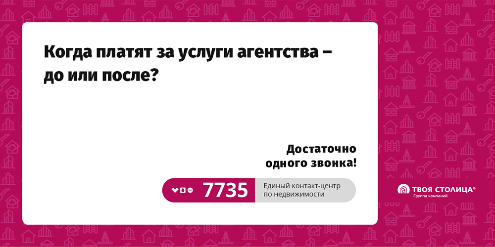 Этот вопрос, как правило, чаще задают арендаторы жилья, уже получившие негативный опыт предоплаты за несуществующую квартиру. Услуги специалистов «Твоей столицы» оплачиваются только после подписания договора аренды с собственником, т.е. – за результат.