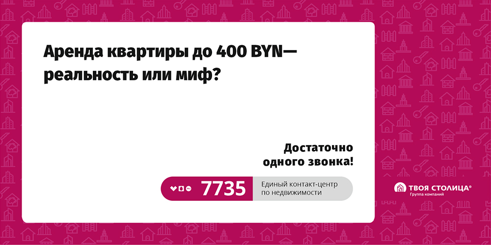 Квартира в аренду до 400 BYN на текущий момент - это реальность. В нашей расширенной базе есть такие предложения. Звоните!
