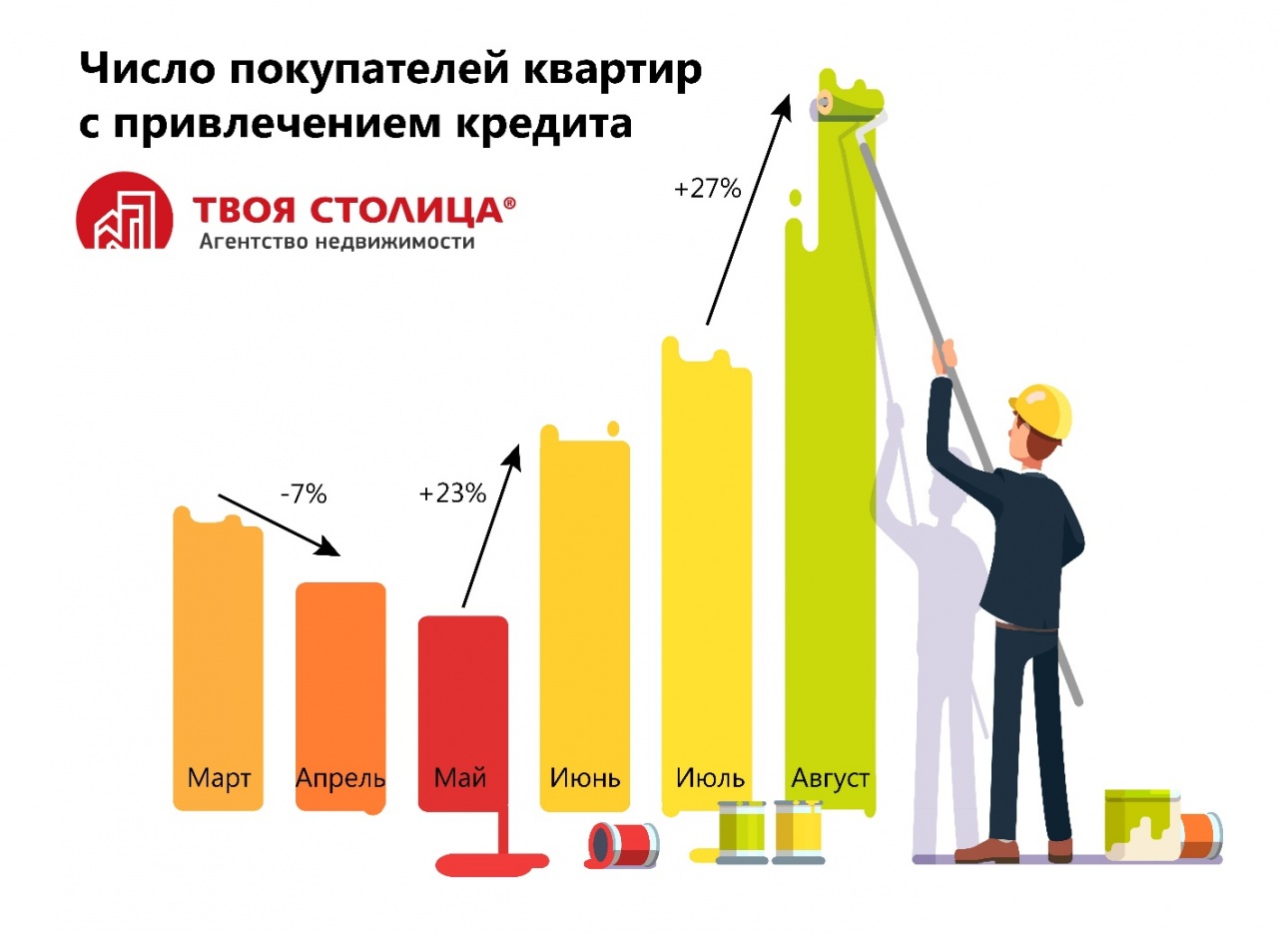 «Ожидалось, что повышение ставок сильно снизит активность потребителей, и кредиты на жилье станут брать меньше, - продолжает Людмила Семенова. – Однако данные нашей внутренней статистики говорят об обратном. Если сравнивать цифры мая, июня, июля и августа то покупатели с кредитами стали обращаться к нам в компанию чаще. Прирост в июне составил 22,8%, в июле - еще 8,7%, а в августе на 27,1%.