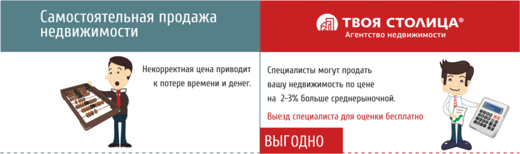 На наш взгляд, уже на этом этапе стоит обратиться к профессионалам: пусть каждый делает свою работу. Тем более это вполне оправдано: например, у нас, вы получите консультацию по стоимости квартиры (а заодно, по прочим нюансам продажи) совершенно бесплатно.