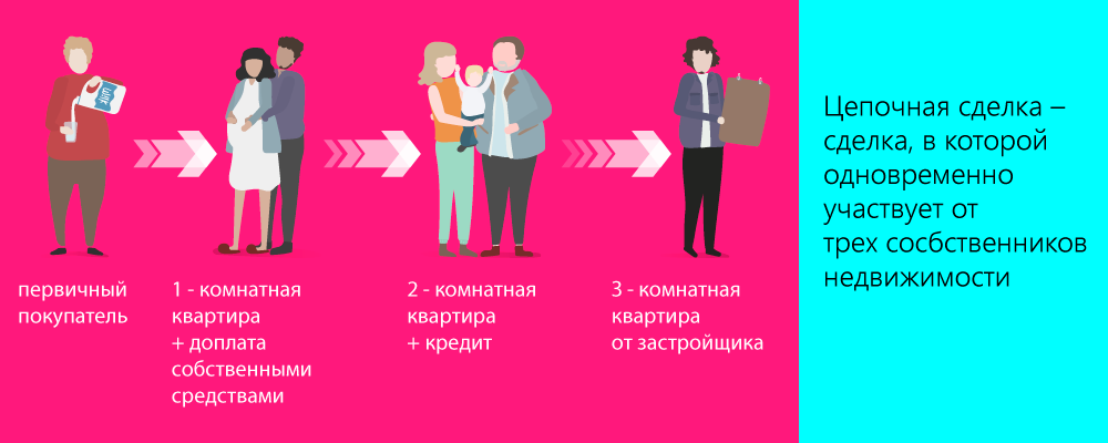 При составлении и проведении цепочных сделок мы отталкиваемся от потребностей и возможностей всех сторон сделки. Чтобы создать и успешно закрыть многозвеньевую цепочку сегодня нам стало с одной стороны проще: внедрение информационных технологий, наличие специальных программ «ПЕРЕЕЗЖАЕМ В НОВОСТРОЙКУ» «ТЕХНОЛОГИИ МОБИЛЬНЫХ ПРОДАЖ», «РАСШИРЯЕМ ЖИЛПЛОЩАДЬ» и баз c актуальной информацией вкупе с опытом специалистов позволяют решить «квартирный вопрос» выгодно и быстро.С другой стороны появляются новые вводные, которые меняют ситуацию буквально каждый день. Специалистам необходимо иметь «про запас» несколько альтернативных вариантов, чтобы цепочка не рассыпалась и все участники –звенья решили свой квартирный вопрос.