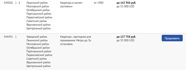 2. Двухкомнатные квартиры от 45.000 до 65.000 USD, состояние не важно