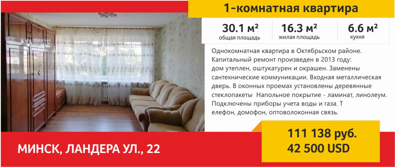 Однокомнатная квартира, Минск, ул. Ландера, 22