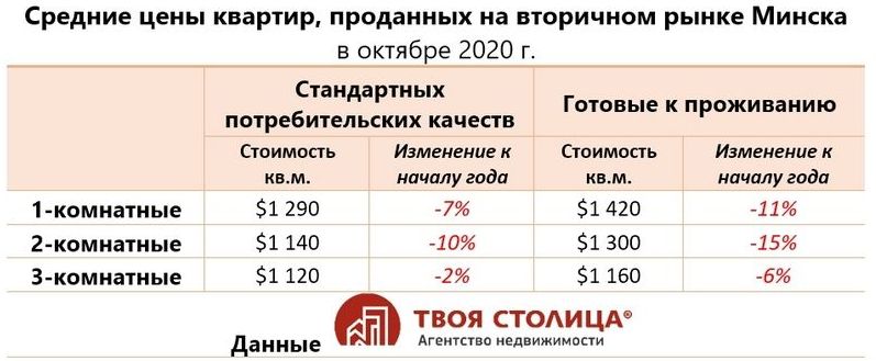 За неполный 2020-й цены на жилье, констатирует эксперт, в среднем упали на 7%. Сказались многие факторы, главным из которых риелторы считают обменный курс доллара, резко подскочивший в марте. Именно он определяет платежеспособность покупателей: большинство людей получают доход в белорусских рублях, в то время как цены на квартиры выставляются в долларах.