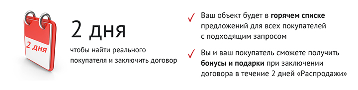 Продаете недвижимость? У Вас будет 2 дня, чтобы громко заявить о своем «вкусном» предложении, а у покупателя, - принять решение о приобретении Вашей квартиры.