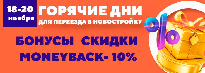 Скидки на новостройки, бонусы и Moneyback! ГОРЯЧИЕ ДНИ с 18 по 20 ноября.