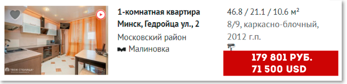 Самая недорогая квартира, готовая к проживанию из базы «ТВОЯ СТОЛИЦА.АГЕНТСТВО НЕДВИЖИМОСТИ» стоит сегодня - 48 500 USD, а самая дорогая - 480 000 USD.