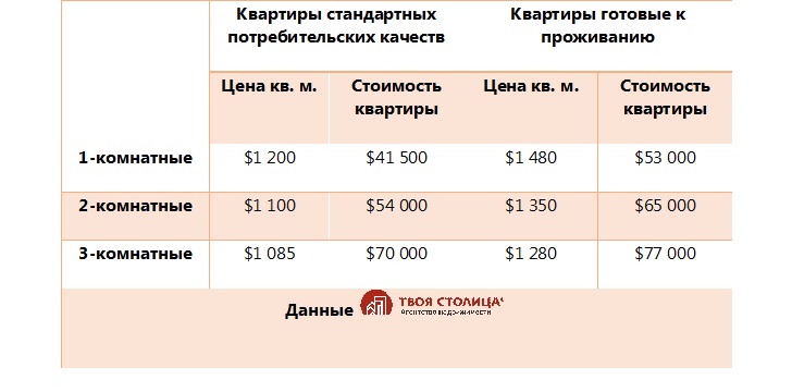 Средний уровень цен, складывающийся сейчас на вторичном рынке жилья, в разрезе - квартира стандартных потребительских качеств (обычная квартира, которую стоит отремонтировать) и готовая к проживанию квартира (“въезжай и живи”), составляет: