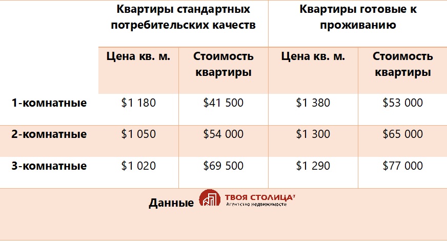 Средний уровень цен, складывающийся сейчас на вторичном рынке жилья, в разрезе - квартира стандартных потребительских качеств (обычная квартира, которую стоит отремонтировать) и готовая к проживанию квартира (“въезжай и живи”), составляет: