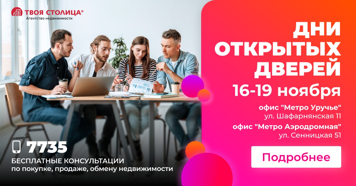 Со 16 по 19 ноября специалисты «ТВОЯ СТОЛИЦА.АГЕНТСТВО НЕДВИЖИМОСТИ» ждут на бесплатные консультации в 2 из 7 своих офисов.