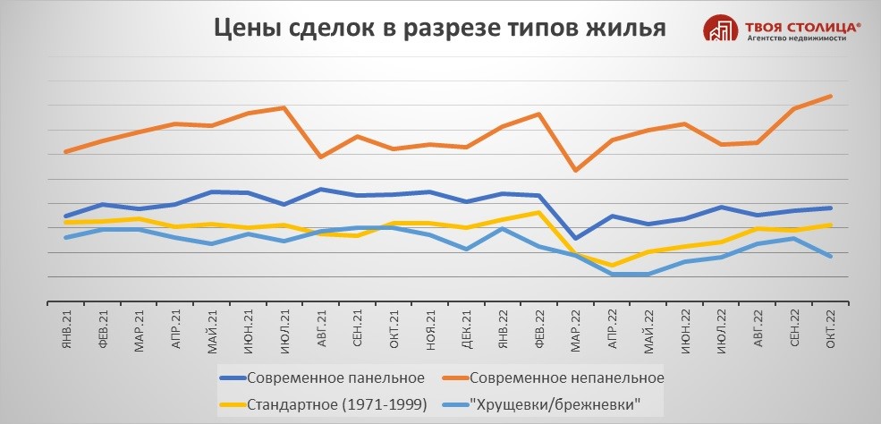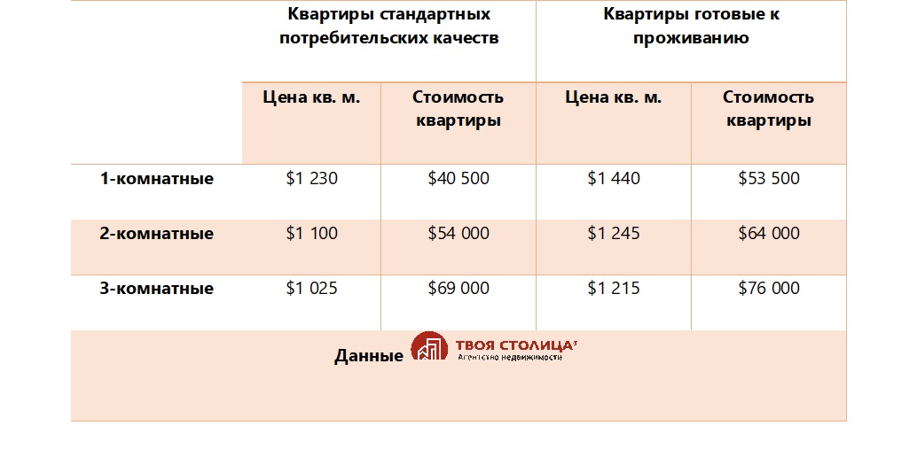 В настоящий момент средние цены совершаемых сделок, по данным Агентства недвижимости «ТВОЯ СТОЛИЦА», складываются на уровне:
