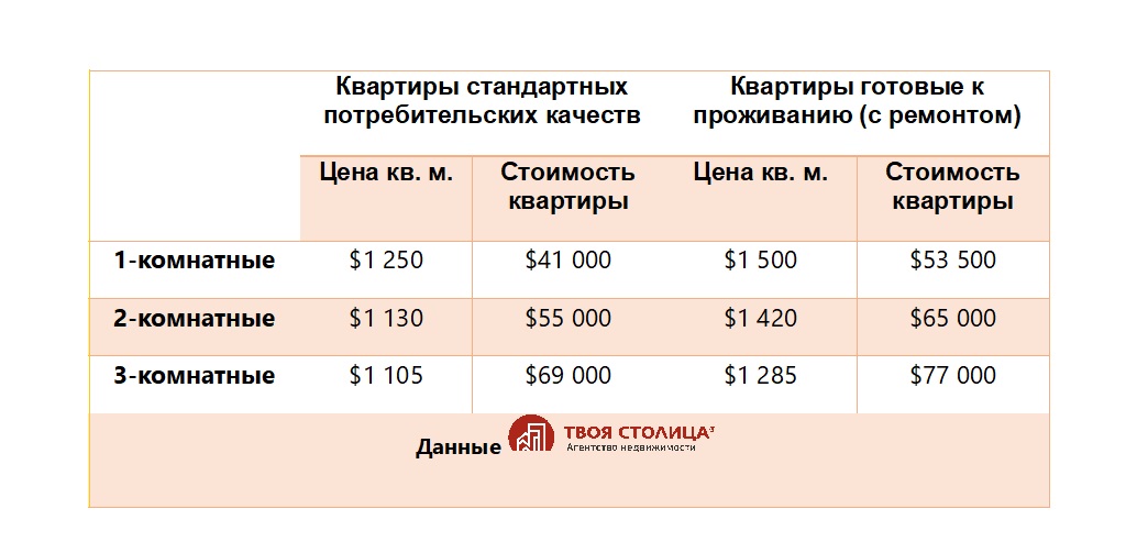 По данным Агентства недвижимости «ТВОЯ СТОЛИЦА», по итогам заключенных в апреле сделок средние цены на квартиры сложились на уровне: