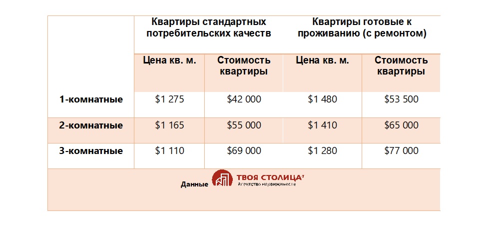 По данным Агентства недвижимости «ТВОЯ СТОЛИЦА», в середине июля цены на квартиры формируются на уровне:
