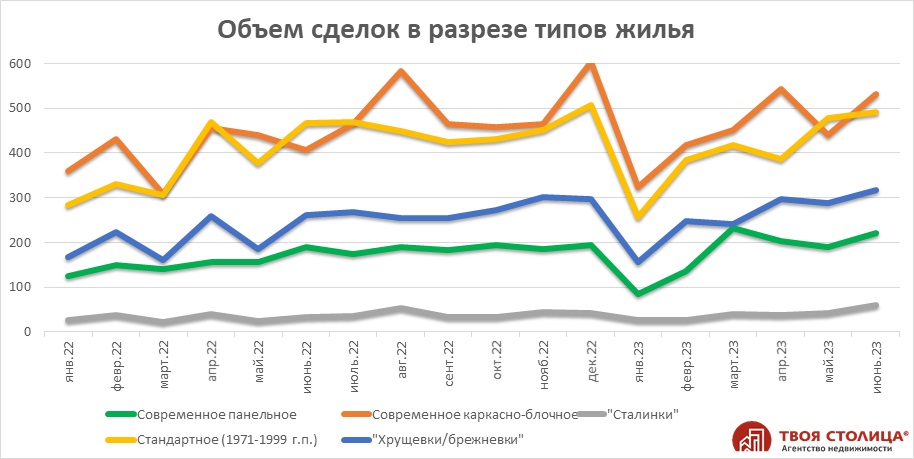 Чаще всего покупатели приобретают квартиры в современных каркасно-блочных домах и в стандартном панельном жилье, построенном с 1971 по 1999 гг.