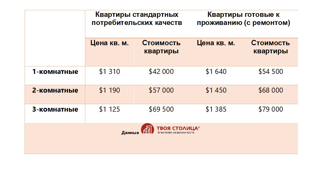 Реальные цены, сложившиеся на рынке по данным Агентства недвижимости «ТВОЯ СТОЛИЦА» в сентябре, составили: