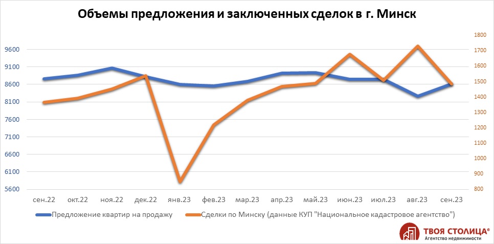 Это достаточно большой объем сделок, однако он не достиг уровня летней активности рынка. Три месяца лета поставили уникальный рекорд спроса на квартиры в Минске - 4917 сделок. Осень началась значительно скромнее.