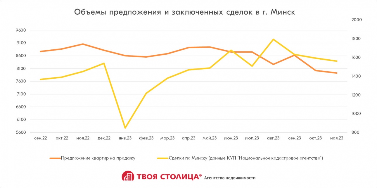 Что касается спроса, то на вторичном рынке жилья он растет третий год подряд. Если в доковидном 2019-м году в Минске было заключено 13 095 сделок, то в 2021-м их было более 14,5 тысячи, а в 2022-м — более 15,8 тысячи. В 2023 году мы ожидаем уже более 17,5 тысячи сделок. Этот год будет рекордным по активности для вторичного рынка, но, кстати, частично это происходит за счет «первички» — ниже мы подробнее коснемся причин и следствий.