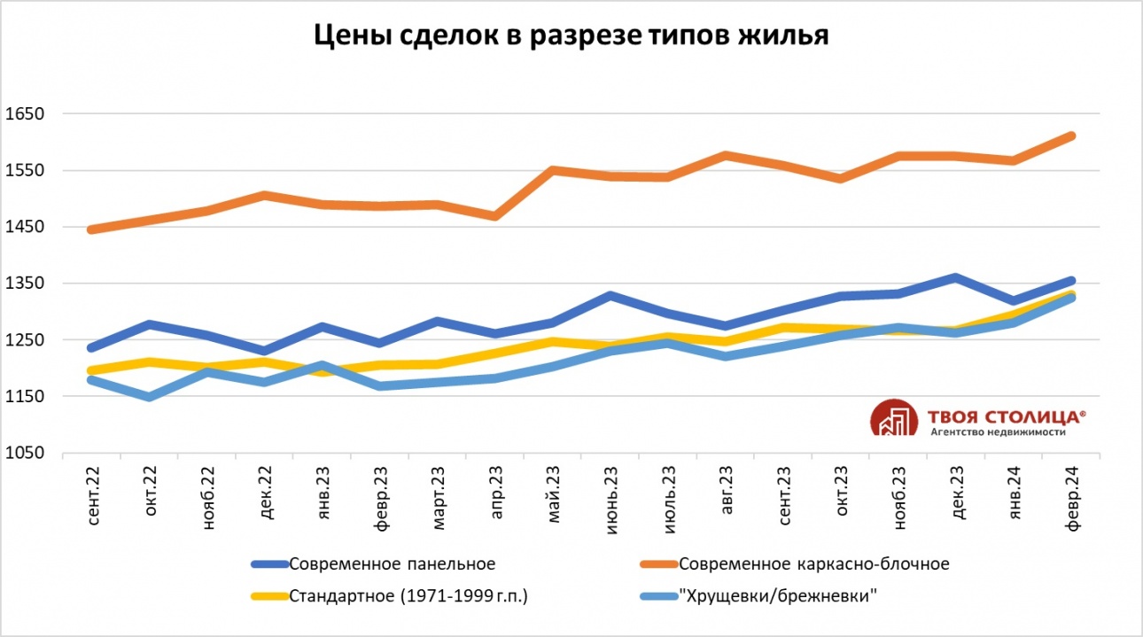 За февраль средний уровень цен на квартиры вырос на 1,7%. Такая ситуация наблюдалась во всех типах жилья. Но наиболее высокие цены складываются в современных отремонтированных под ключ квартирах в каркасно-блочных домах.
