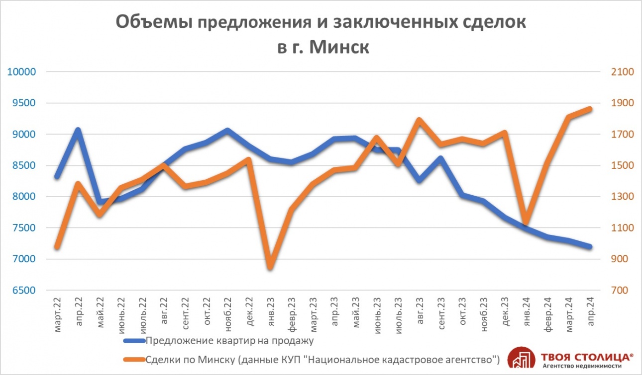 В апреле на рынке жилья было заключено 1863 сделки с квартирами. Можно было бы сказать, что это рекорд, но с ростом количества сделок выросла и доля зарегистрированных новостроек. Если говорить о чистых сделках вторичного рынка (сделках в которых не участвовали застройщики), то их количество остается на уровне марта – порядка 1690 проданных квартир.