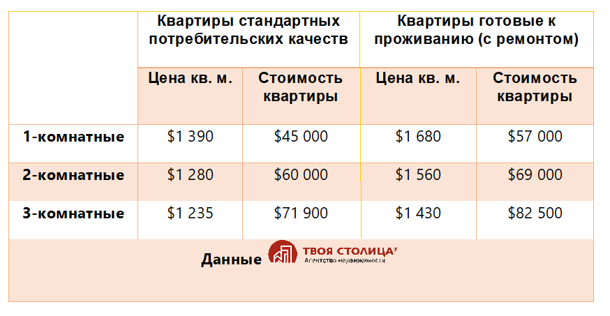 Если говорить о сделках в разрезе готовых к проживанию квартир и квартир без ремонта, то, по данным Агентства недвижимости «ТВОЯ СТОЛИЦА», в апреле цены на вторичном рынке жилья составили: