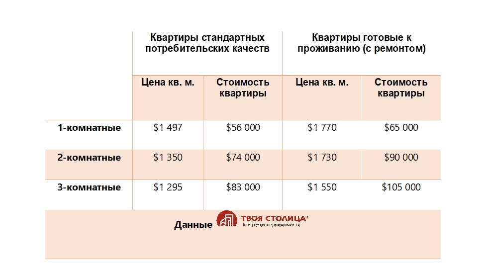 В настоящий момент средние цены совершаемых сделок, по данным Агентства недвижимости «ТВОЯ СТОЛИЦА», складываются на уровне: