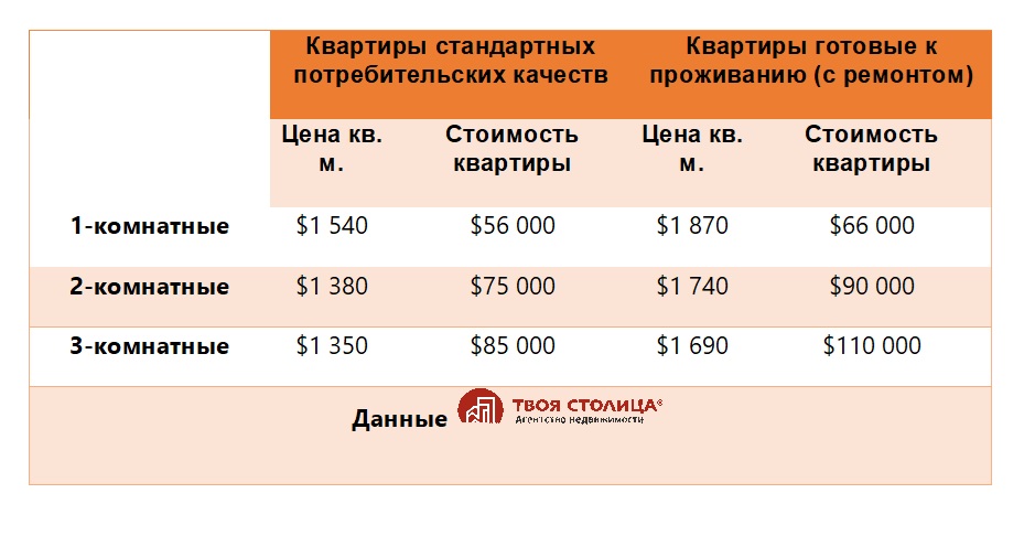 По итогам января средние цены совершаемых сделок, по данным Агентства недвижимости «ТВОЯ СТОЛИЦА», составили: