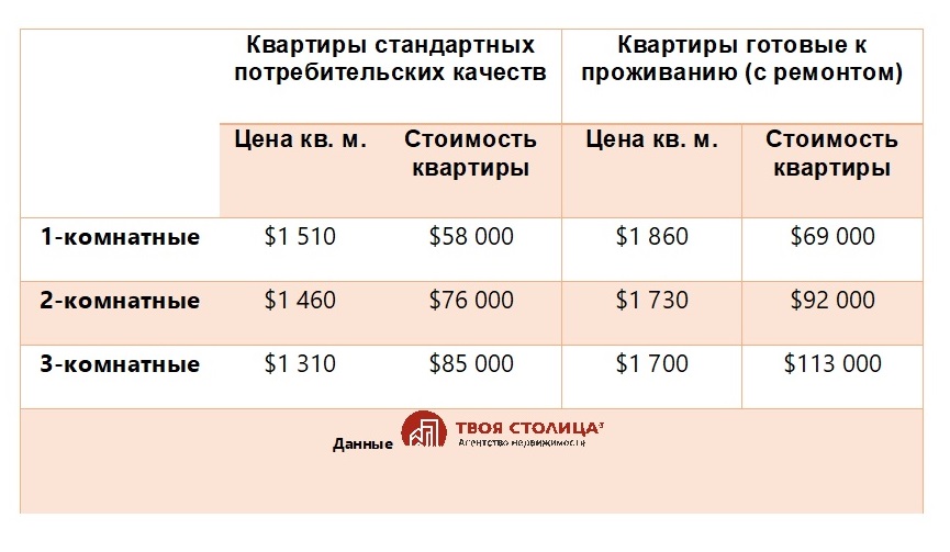 Если же сравнивать готовые к проживанию квартиры и квартиры без существенного ремонта, то по итогам сделок, заключенных Агентством недвижимости «ТВОЯ СТОЛИЦА», уровень цен составил: